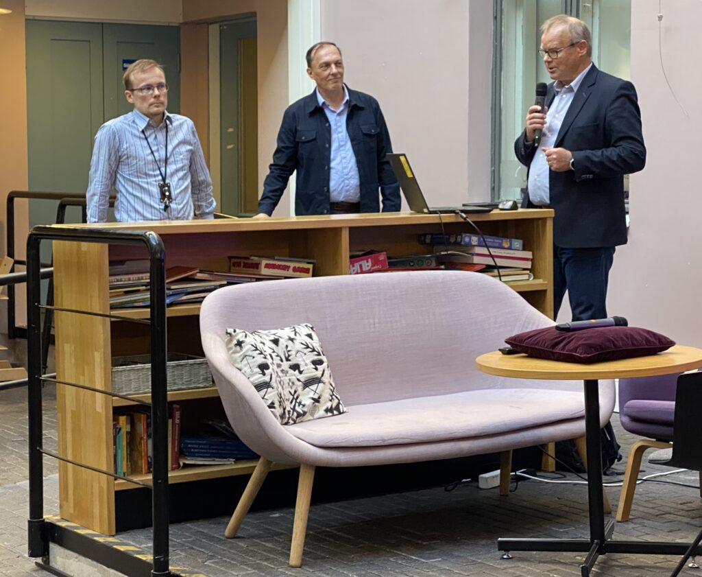 Argumenta Biokiertotaloustapahtuma Oulussa 22.9.2023. Kuvassa Pekka Juntunen, Jouko Inkeröinen ja Jussi Paakkari. Kuva: Seppo VainioArgumenta Biokiertotaloustapahtuman paneelistit Aila Ryhänen, Seppo Vainio, Antero Kiljunen, Katri Kärkkäinen ja Timo Hugg. Taustalle paneelin junontaja Jussi Paakkari.